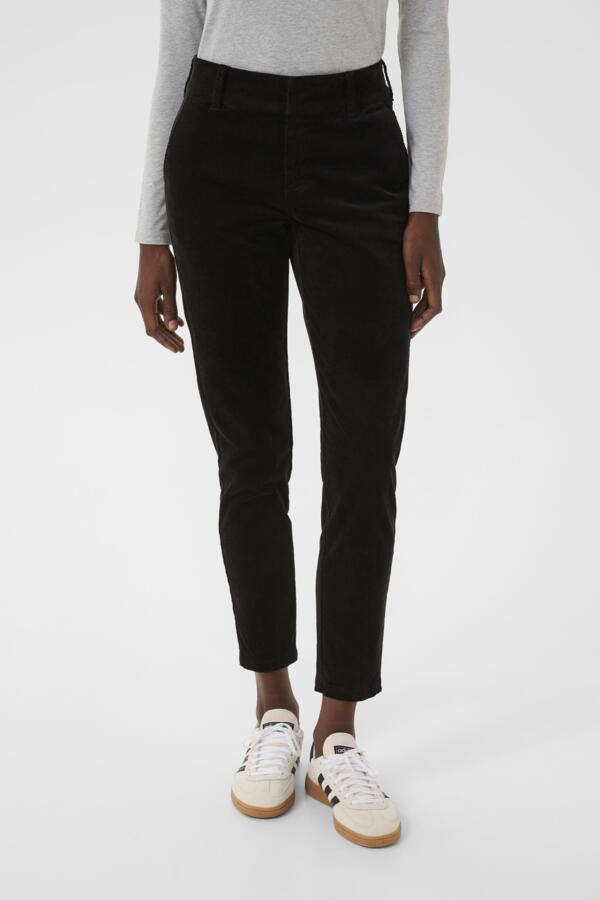 Modellen er 174 cm høj og har en størrelse 36 på. Disse bukser i blød bomuldsblanding har en lige pasform og en enkel silhuet, der gør dem nemme at style. Med bæltestropper og skjult lukning er de et alsidigt valg til både arbejde og fritid. Brug dem med en skjorte eller T-shirt for et afslappet, stilrent udtryk.