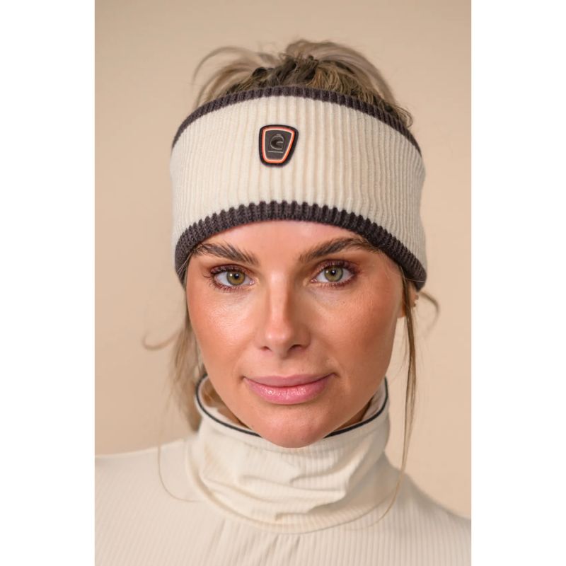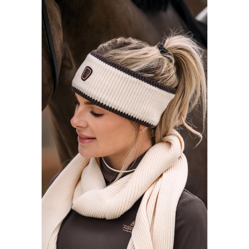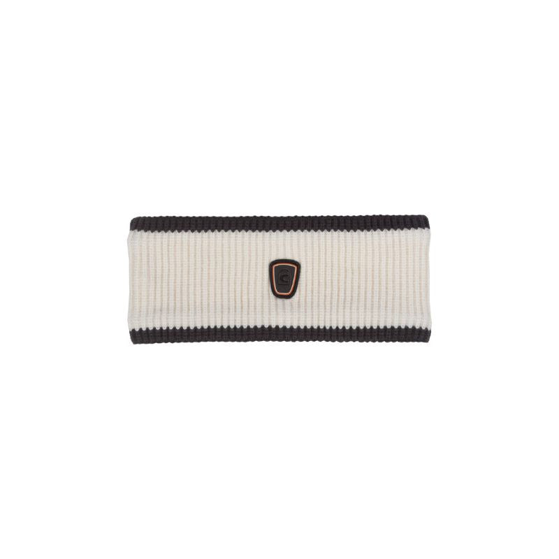 Elegant pandebånd i blødt, strikket ribmønster med fin kontraststribe langs kanten.