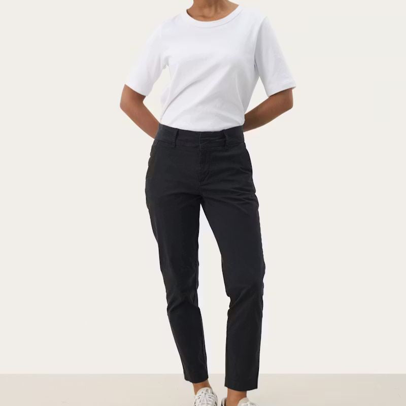 Bukserne er nemme at style og kan bruges til både arbejde og fritid. Kombinér dem med en skjorte eller T-shirt for et enkelt hverdagslook.