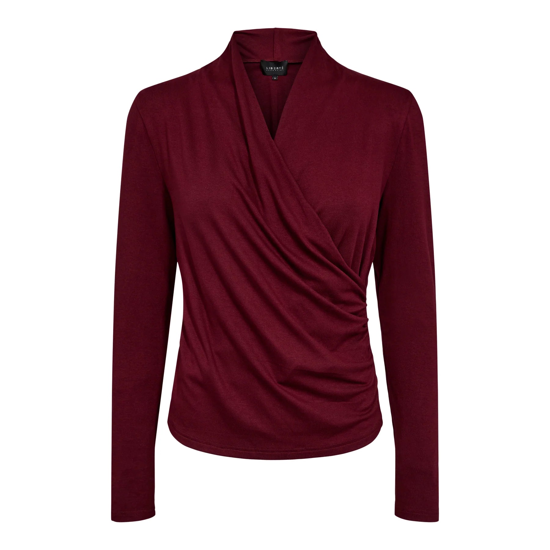 EA LS WRAP BLOUSE - BORDEAUX, 22258