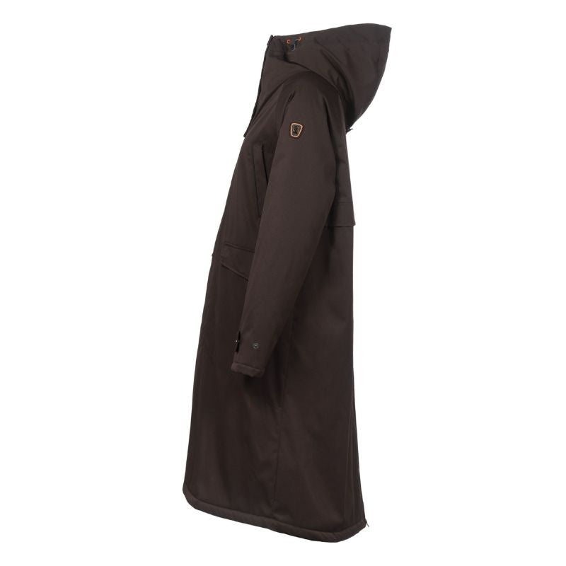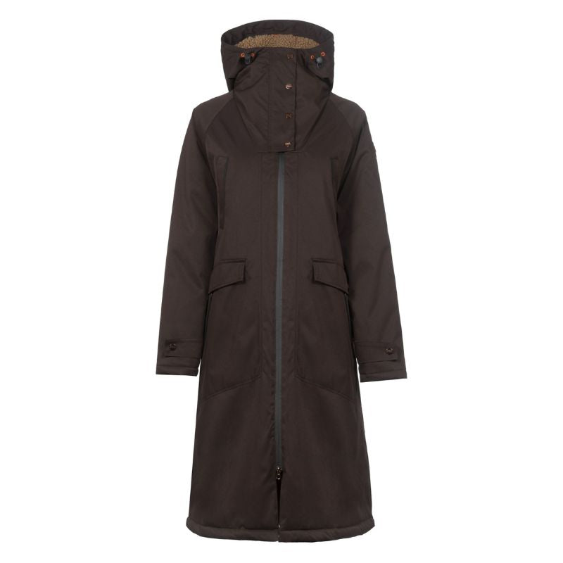 Bagpå er der en lynlås fra søm til hofte, så frakken også kan bruges under ridning.