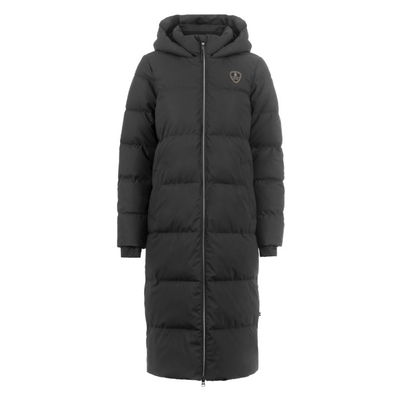 Cavallo Sporty Maxi Coat er en lang, sporty frakke med kunst-dunfyld og et ydermateriale i voks-look med brede quiltninger. Frakken har en stor hætte med sort snøre, der kan fæstnes bagpå med trykknap, samt et Cavallo-kontrastprint på kanten. Indvendigt giver en ekstra ribkrave i sort en behagelig pasform, mens ærmemanchetter i jersey beskytter mod kulde.