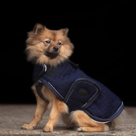 HV Polo hundedækken - Franka - Navy er fremstillet i materiale med uldlook og har et blødt foer i imiteret pels. Dækkenet har dekorative detaljer med små sten langs kanten.